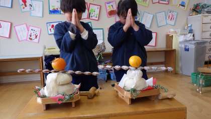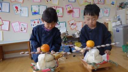 昨日、鏡餅について話を聞いていたので、より鏡餅に親しみを持っていました。
