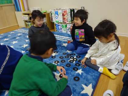 保育室では暖かいカーペットの上でかるたやカード遊びをしていました。