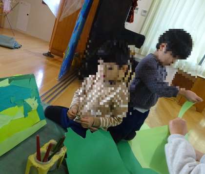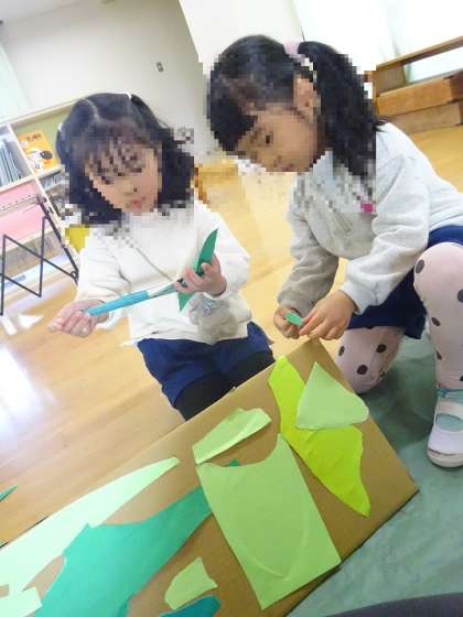 自分たちでつくったものをお話遊びで使うと、「本当にジャングルみたいになってきたね」と楽しむ姿も見られてきています。