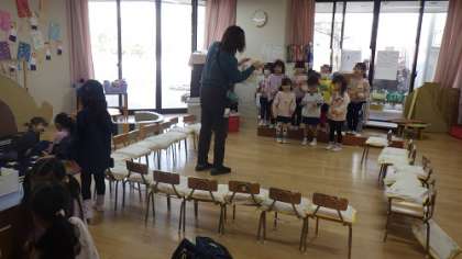 自由に遊ぶ中で自由に楽器に触れる。そしてそれが楽しいと思い、みんなで演奏する。それが、生活発表会につながっています。