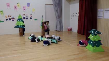 「てぶくろごっこ」3歳児 公開日 2025/01/21 更新日 2025/01/21 お知らせ 今日は、自分のしたい動物になって「てぶくろごっこ」を楽しみました。 「この前、キツネしたから今日はウサギになる」 「私は、クマになる!」 なりきって、お話を楽しんでいましたよ。 言葉も、どんどん大きな声で出てくるようになってきました。 楽しさに自信が加わってきたのでしょうか。 最後の隠れる場面も、いろいろな隠れ場所をみつけて隠れている動物たち。 かわいいですね。 いいね(0)
