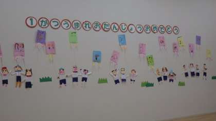 1月の壁面は4歳児ゆき組の製作です。かわいい凧揚げの製作にほっこりします。