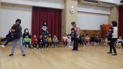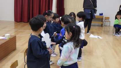 1月誕生会 公開日 2025/01/22 更新日 2025/01/22 お知らせ 4歳児ほし組から手づくりプレゼントがありました。 雪だるまのモチーフの手づくり楽器は、とても可愛いです。 また、保護者とふれあい遊びでは、子どもたちの嬉しそうな顔が印象的でした。 お家の方を独占して、みんなの前で踊る様子は“親子のふれあいって大切だなぁ”としみじみ感じさせてくれる、ほっこりとした時間です。 いいね(0)