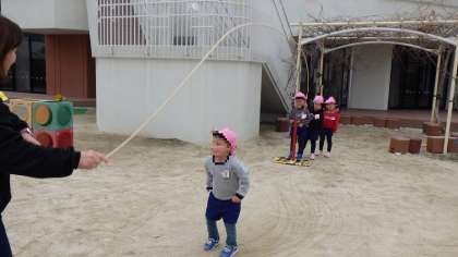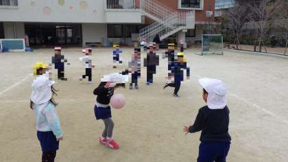 園庭での遊び(4歳児) 公開日 2025/01/22 更新日 2025/01/22 お知らせ 「お外いこう!」と伝えると「やった!」と大喜び。寒くても子どもたちはとび出していき、「一緒にドッジボールしよ!」「一輪車のりたい」「おにごっこしたい」と目的をもってあそんでいます。ドッジボールではルールもみんなが理解し、逃げたい、当てたいなどみんなで遊ぶ楽しさも感じられるようになってきました。遊んだあとは「寒くないな!」「暑いぐらいやわ」と話しんがらお茶を飲む姿が可愛かったです。 いいね(0)