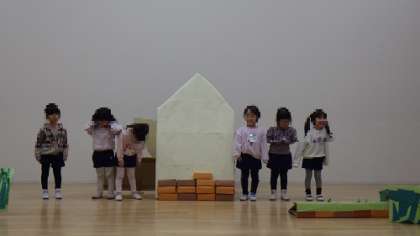表現遊び(4歳児ゆき組) 公開日 2025/01/23 更新日 2025/01/23 お知らせ 4歳児 ゆき組の劇遊びも、楽しそうにオオカミをしたり、ブタになったり…。 今は役を交代しながら、みんなが、どの役にもなれるように楽しみながら劇が進んでいます。 来週は予行もあります。 楽しみです! いいね(0)