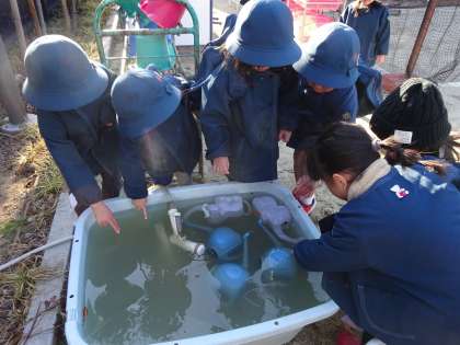 触るととっても冷たい〜ですが、子どもたちは嬉しそうに何度も手にって楽しんでいました。