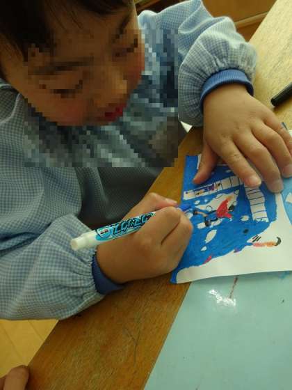 しっかりぬったり、丁寧に書いたり、細かいところまで集中してかいたりなど真剣な表情で黙々とかいていました。