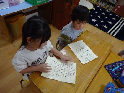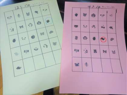 子どもたちはカードを持って誘い合い、とっても嬉しそうにマルをつけていました!