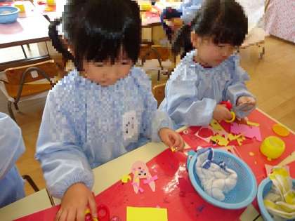 ハサミの使い方、のりの使い方等、子どもたちは日々の積み重ねで
