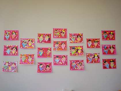 自分でつくった雛飾りが、保育室の壁に飾られると、