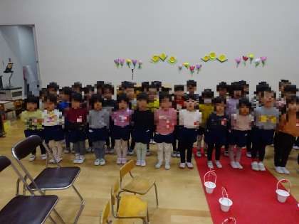 修了式のお祝いの言葉と歌の練習(4歳児)