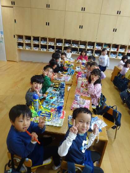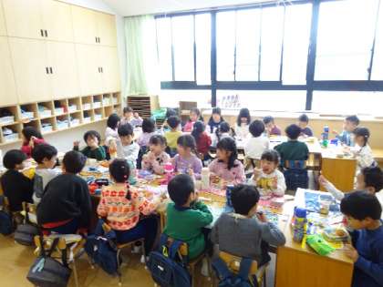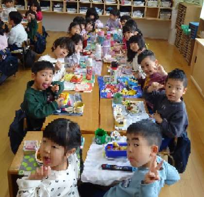 今日はほし組ゆき組が2階に上がらせてもらい、年長児と弁当を一緒に食べました。