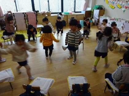 介助サポーターの先生と一緒に遊んだよ(3歳児) 公開日 2025/03/13 更新日 2025/03/13 お知らせ いつも、クラスで楽しんでる「まねっこあそび」と「フルーツバスケット」を、介助サポーターの先生と一緒に楽しみました。 フルーツバスケットでは、子どもが「〇〇先生が好きな人!」と言うと、全員が動きます。 子どもたちは、介助サポーターの先生が大好きです。 一緒に遊べて楽しかったですね! いいね(0)