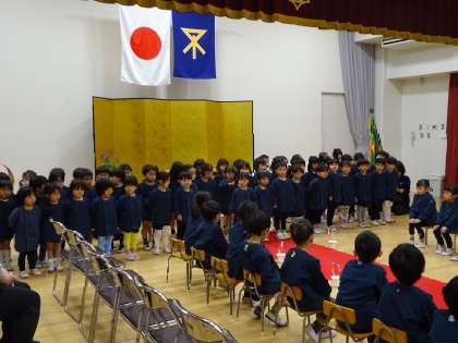 修了式の練習に参加したよ(3,4歳児) 公開日 2025/03/13 更新日 2025/03/13 お知らせ 今日は在園児が修了式の最後の練習に参加しました。 そら組は小さい組が話す言葉を真剣な表情で聞いてくれていました。 「年長さんと過ごせるの、あと○日やね」と、毎日おたより帳を見て、 お別れの時に思いを寄せている子もいます。 当日は思いを込めて、言葉と歌をプレゼントできるよう、 子どもたちと気持ちを高めていきたいと思います。 いいね(0)