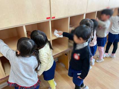 大掃除 公開日 2025/03/18 更新日 2025/03/18 お知らせ もうすぐ進級です。 新しいクラスに進級する期待でいっぱいの子どもたち。 今日は次に部屋を使う小さい組さんのために、大掃除をしました。 雑巾を持って、あちこちピカピカに拭いています。 外のおもちゃも、泥を落としてきれいになりました! いいね(0)