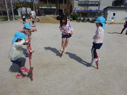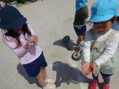 年中の時から遊んでいたホッピングや大縄跳び、ダンゴムシ探しなど好きな遊びを見つけて楽しんでいました。