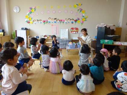 先生の楽しい手遊びや絵本もあり、
