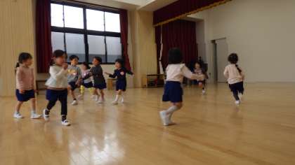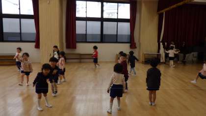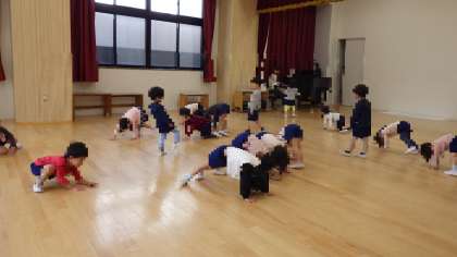 ほし組とゆき組の楽しい遊び 公開日 2025/04/14 更新日 2025/04/14 お知らせ 11日(金)に、ほし組とゆき組合同で音楽に合わせて体操やダンスをして遊びました。 高くジャンプをしたり、四つん這いになって歩いたりと、体を使って大きく動いていました。 ダンスでは子どもたちが自由に踊っており、様々な表現方法を楽しんでいる様子が見られました。子どもたちがのびのび遊びを楽しめるように、これからもたくさん新しい音楽に触れていきたいと思います。 いいね(0)