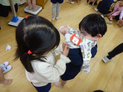 年長児にとっても、発育測定のお手伝いは初めての経験です。