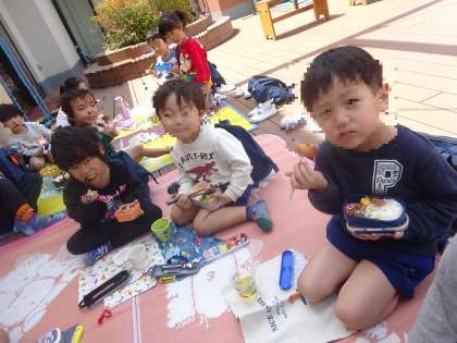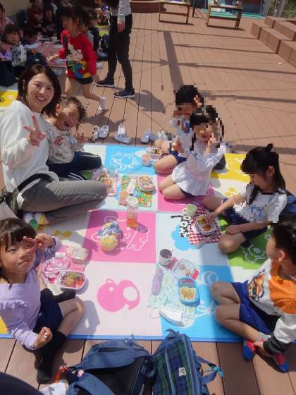 ピクニック(年長児) 公開日 2025/04/17 更新日 2025/04/17 お知らせ 今日は暖かく、とても過ごしやすい一日でした。 少し前から「ピクニックしたい」「つき組とも食べたい!」と言っていた子どもたち。2階のウッドデッキは日当たりもよく、子どもたちのお気に入りの場所です。 お外で食べると風の心地よさも感じながらおいしそうに食べていました。 いいね(0)