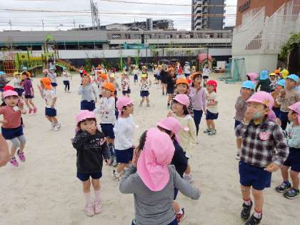 「こいぽぽり体操」をみんなでしたり、異年齢で混ざり合って「ともだちイェイ」を楽しみました。