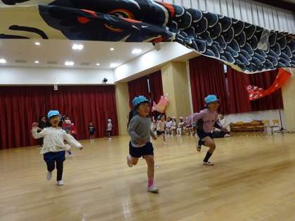 こいのぼりの歌をうたったり、体操やふれあい遊びをしたり、かけっこをしたり…