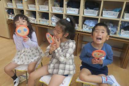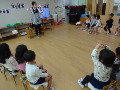みんなの子どもの歯っていったい何本あるのかな?という話から、手鏡を見て一生懸命に数えましたよ。