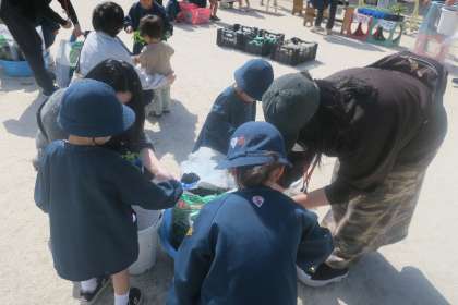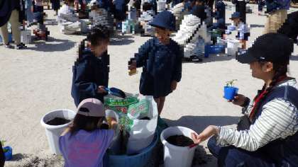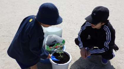 おうちの人と一緒に夏野菜の苗植えをしました。