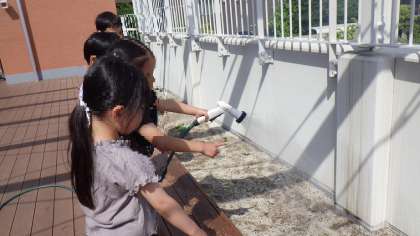 野菜の苗やお花に毎日水やりをしている子どもたち。
