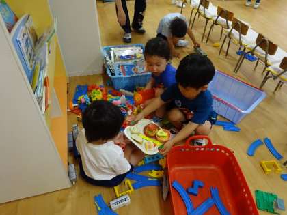 3歳児の保育室ではいろいろな遊具で自分の好きな遊びを楽しんでいます。