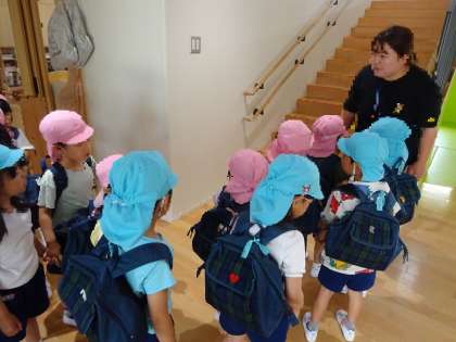 今日は朝方までの雨で園外保育が延期になったので、園内で遠足ごっこを楽しみました。