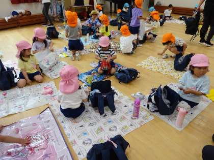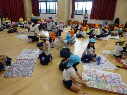 友達と重ならないようにそっと敷いたり、難しいながらに折り目を考えながら折っている子もいました。
