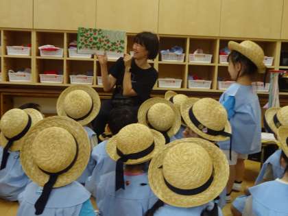 また、絵本も真剣に見ていて、自分の感じたこと、気付いたことを3歳児なりに先生に一生懸命伝えていました。