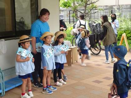 大きい組さんの元気な挨拶が嬉しくて、立ち止まって「おはようございます」と返してくれている子もいました。