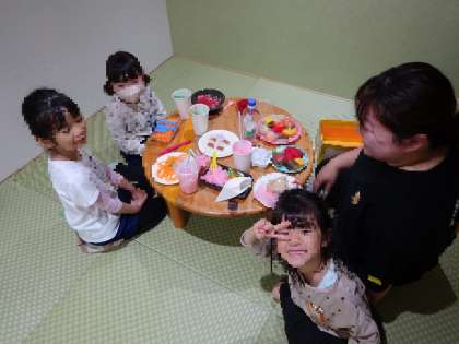 DENを覗いてみると、、、そこでもごちそうを広げて遊んでいました。