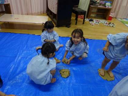 土粘土は感触そのものを味わったり、いろんな形に自由に変形するので、想像力や創造性が培ったりすることができます。