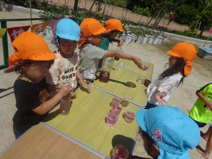 今日は草花の手づくりジュースをつくって遊んでいました。