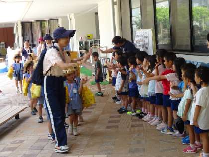 遊んだ後はみんなでどんな遊びが楽しかったか伝えあいました。