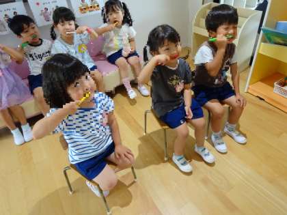 「もう覚えてるもん!」と目をつむって磨くことに挑戦している子もいました。