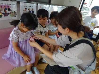お弁当を食べ終わった子から順に、養護教諭に見てもらっていました。