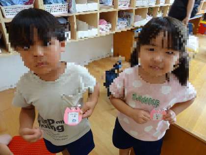 見事!名人になった子には、名札の横にキラキラのお星さまのシールが。