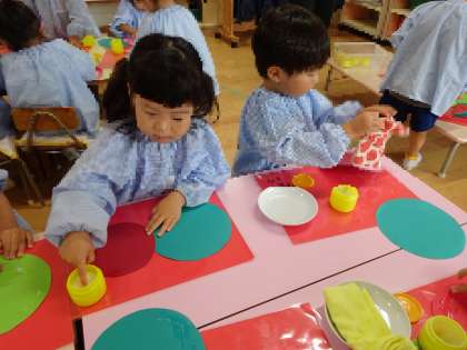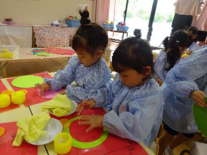 「今日は大きなスイカ。いつもはアリさんの(大きさの)糊だけど、どうしようかな〜」