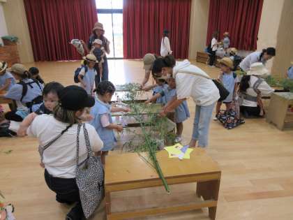 小笹に自分のつくった飾りを付けると、どのクラスの友達も、すごく嬉しそうにもっていましたね。