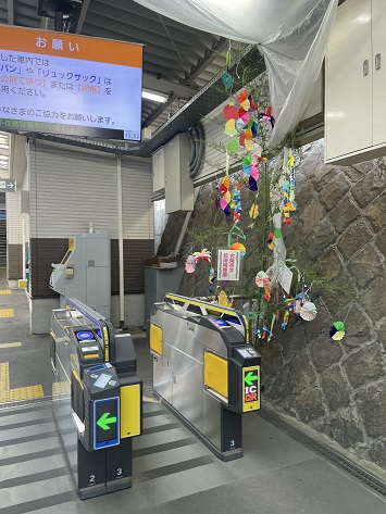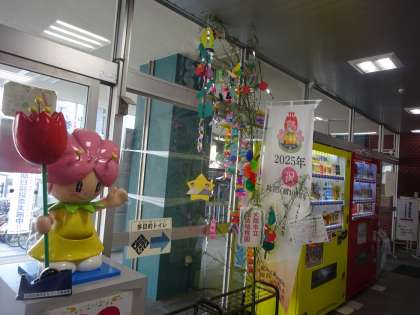 此花区役所(玄関付近)、伝法駅に笹を飾らせていただきました。
