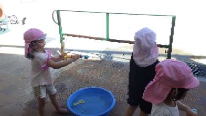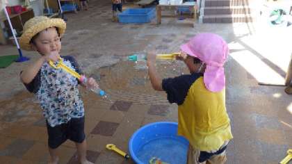 気持ちいい水遊び(4歳児) 公開日 2025/07/10 更新日 2025/07/10 お知らせ 今日はプール遊びをせず、水鉄砲や色水遊び、泥んこ遊びをして楽しみました。 友達同士で水をかけ合ったり、色水でジュースをつくったりして遊んでいました。 水分補給をこまめにとりながら、たくさん水に触れ、とても気持ちよさそうでした。 いいね(0)