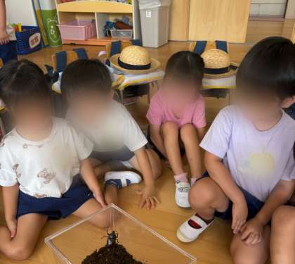 土を入れ替えたり、掃除をしたりして、幼虫を見ていた子どもたち。