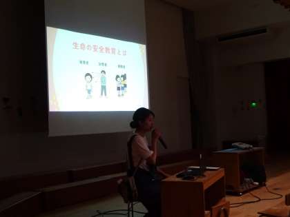 始業式の後は、保護者の方に向けて養護教諭による「生命の安全教育について」の話をしました。