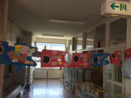 子どもたち手作りのこいのぼりが廊下を彩っています!