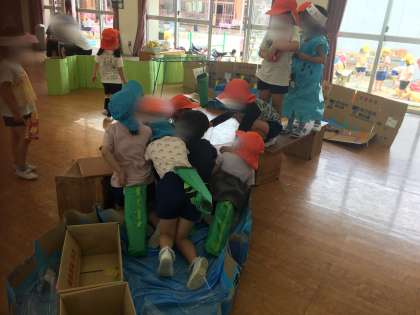 自分でワニのしっぽを作り、通る子どもたちを食べようと潜んでいます。繰り返しの遊びが楽しく何度も橋を通る子どもたちや、ワニのしっぽを作り始める子どもたち。子どもたちが、自由に繰り返し遊べる時間と空間の確保は、子どもたちの主体性をのばします。