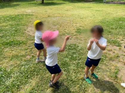 年中は草花の自然に触れたり、大きなジンベエザメの遊具で存分に遊びました!